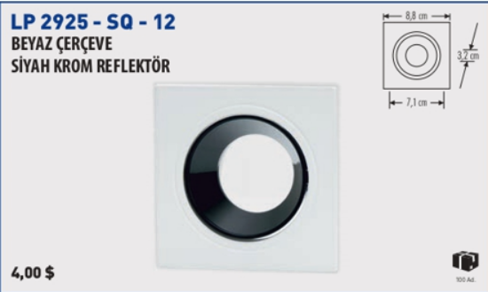 Kare Beyaz Çerçeve Siyah Krom Reflektör