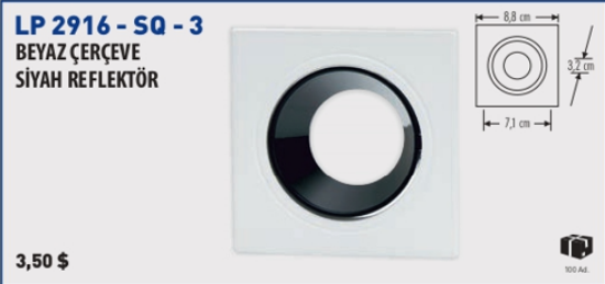Lampist Kare Beyaz Çerçeve Siyah Reflektör